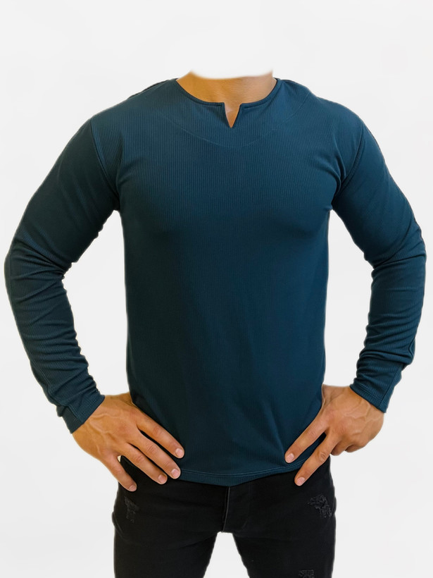 تیشرت یقه کوبایی آستین بلند سبز کله غازی