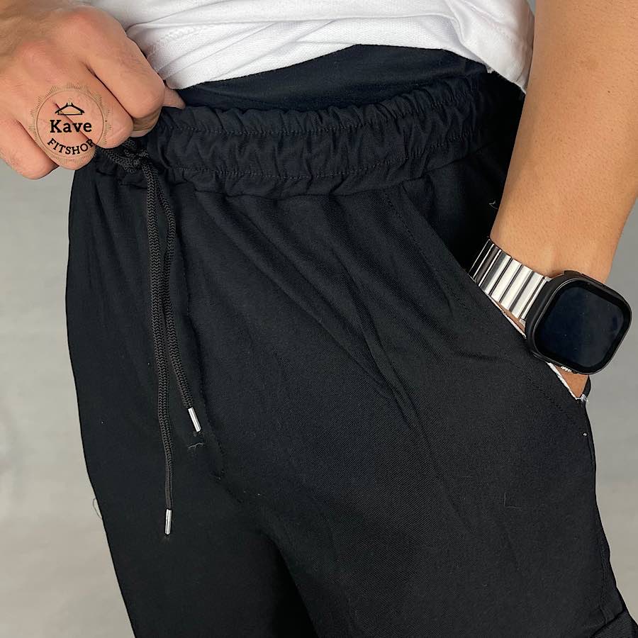 شلوار مردانه مدل کارگو دمپا بندی رنگ مشکی