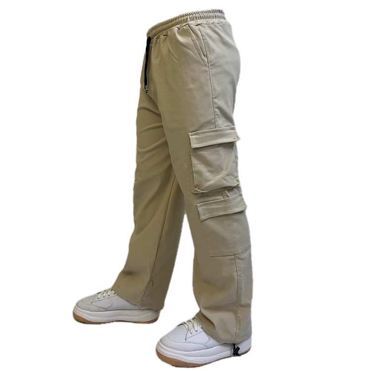شلوار مردانه مدل کارگو دمپا بند دار کرم