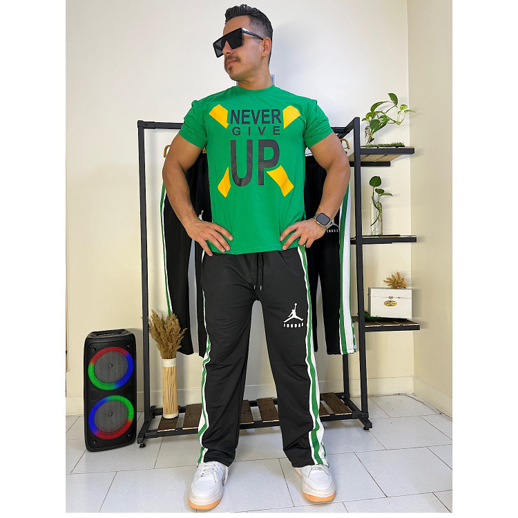 تیشرت آستین کوتاه کشباف دار سبز ۴۰۱