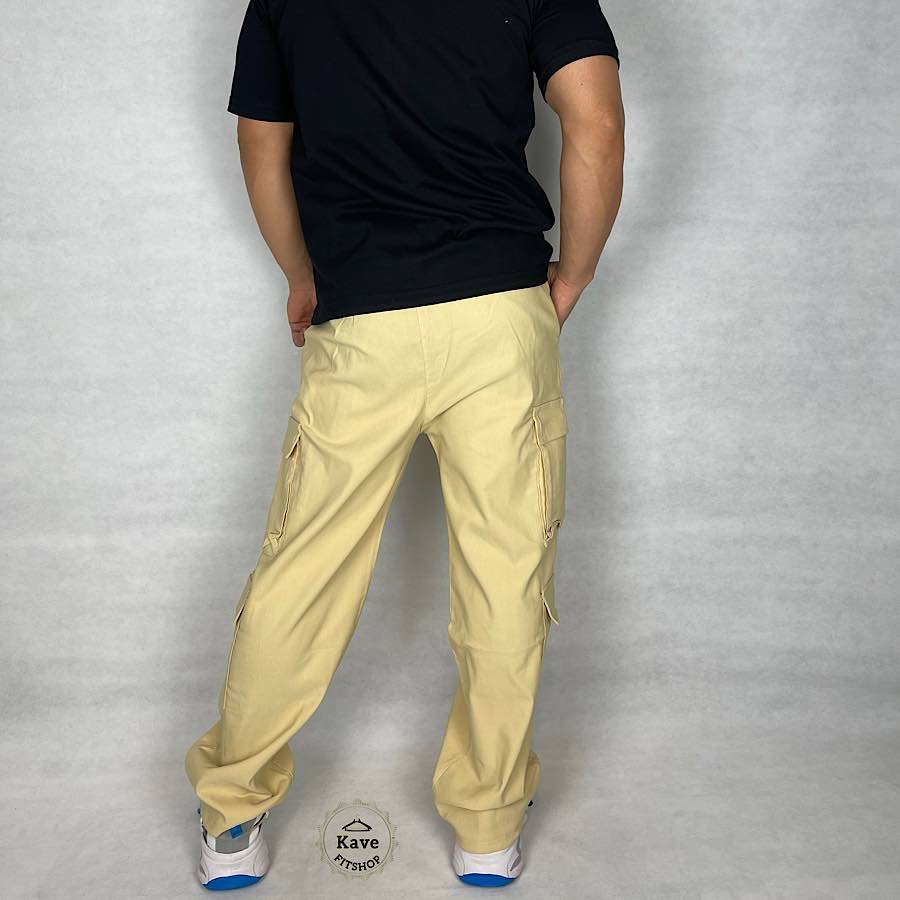 شلوار مردانه مدل کارگو دمپا بند دار نخودی