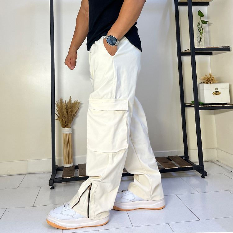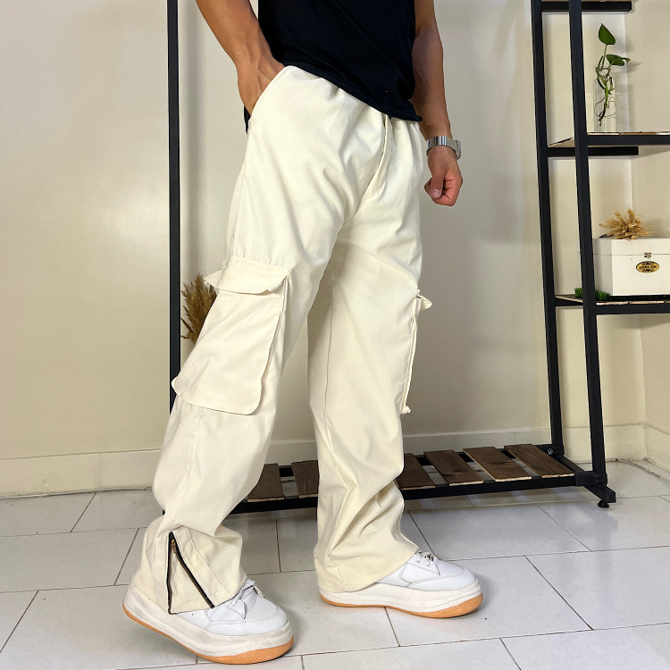 شلوار کارگو کرم پایین زیپ دار کد #112