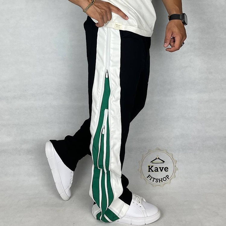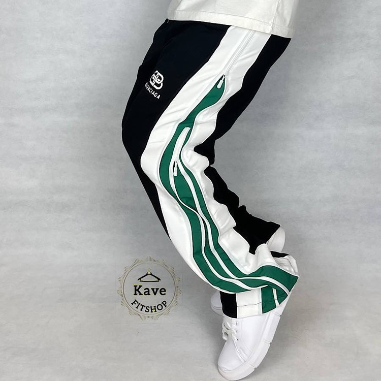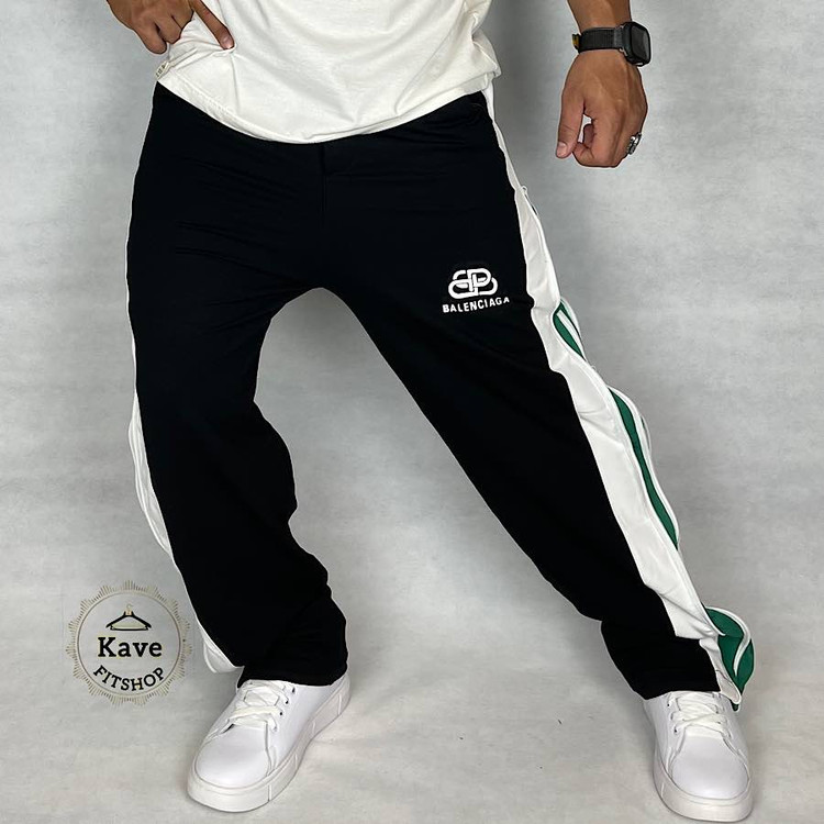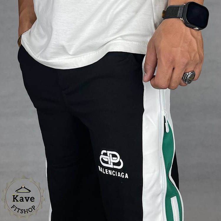 شلوار مردانه مدل بگ پنبه ۴ زیپ مشکی نوارسبز | بالنسیاگا