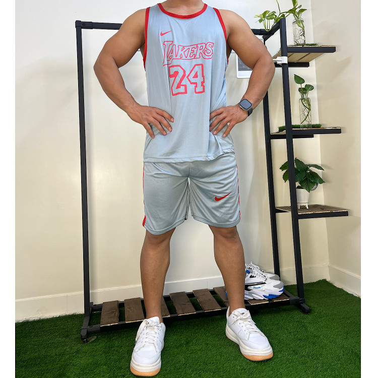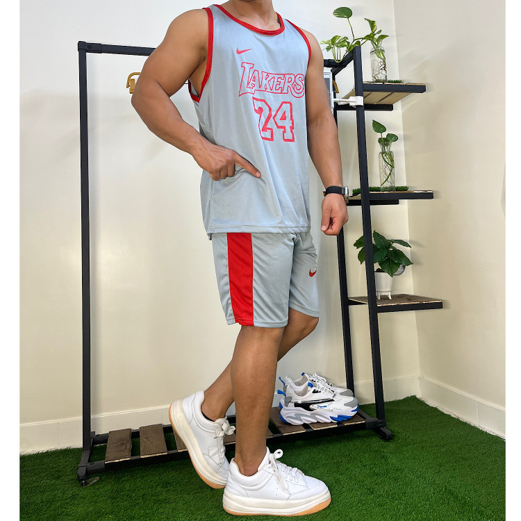 ست مردانه تاپ شلوارک بسکتبالی طوسی | نایک