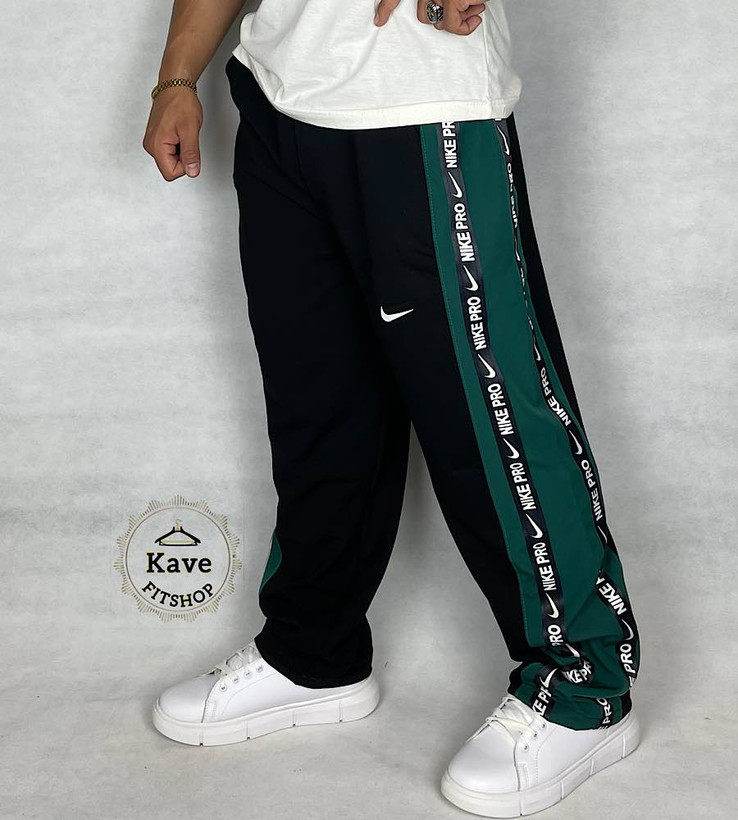 شلوار مردانه مدل بگ پنبه مدل ۲نوار مشکی سبز | نایک