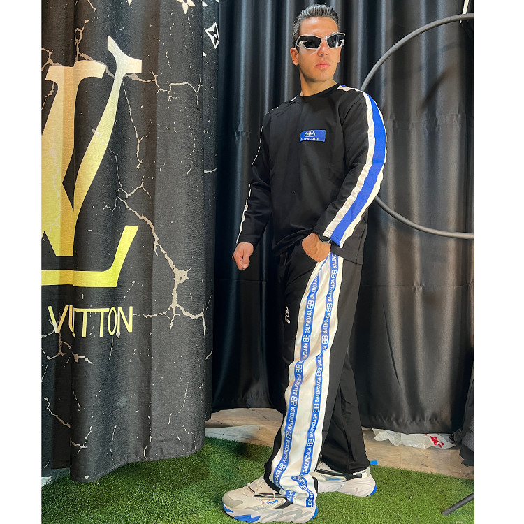 ست بلوز شلوار مردانه پنبه | مدل نوار آبی | بالنسیاگا