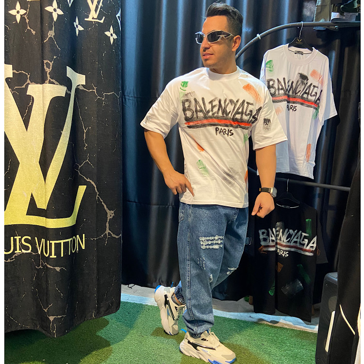 تیشرت مردانه آبرنگی بالنسیاگا | سفید