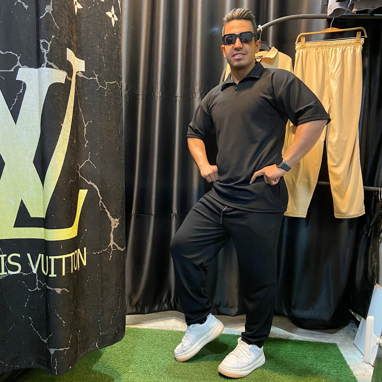 ست مردانه تیشرت نیم زیپ و شلوار مشکی