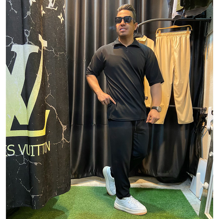 ست مردانه تیشرت نیم‌ زیپ و شلوار مشکی