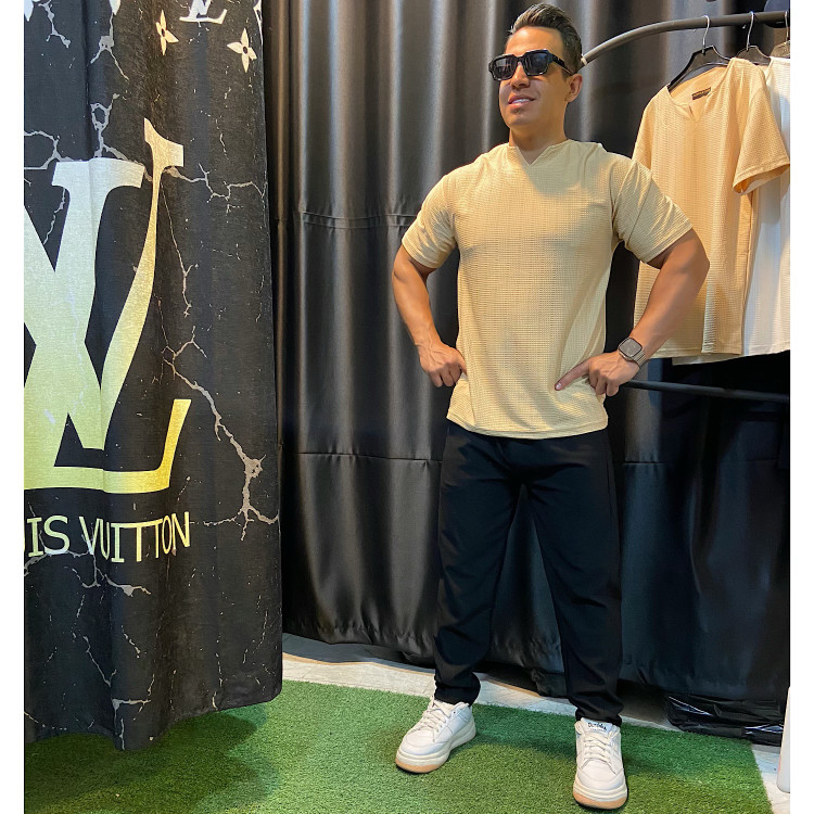تیشرت مردانه مراکشی یقه کوبایی | کرم