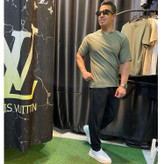 تیشرت مردانه مراکشی یقه کوبایی | سبز زیتونی