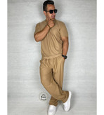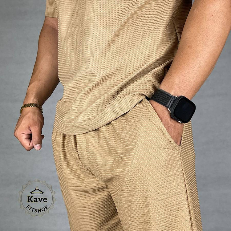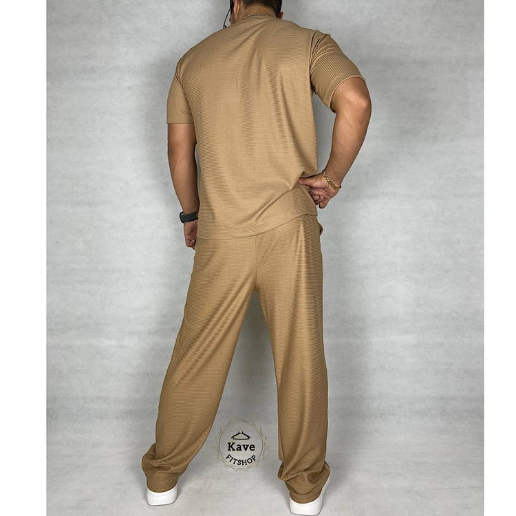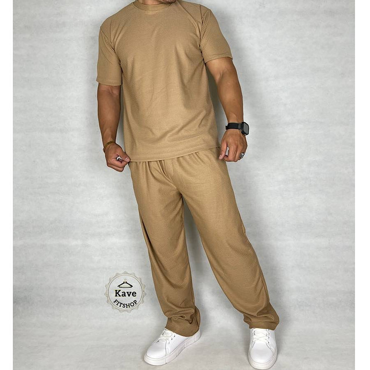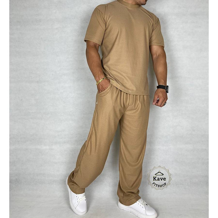 ست تیشرت و شلوار مردانه مدل بیسکویتی نسکافه ای