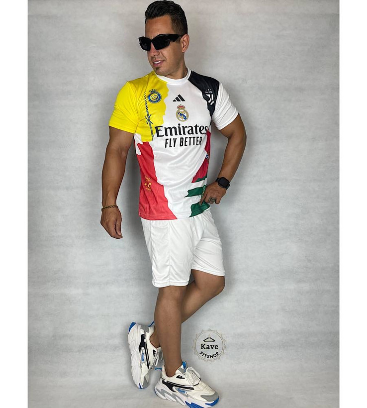 ست تی‌شرت و شلوارک ورزشی مردانه مدل منتخب رونالدو سفید نمای پارچه
