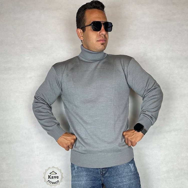 بافت مردانه مدل یقه اسکی | رنگ طوسی