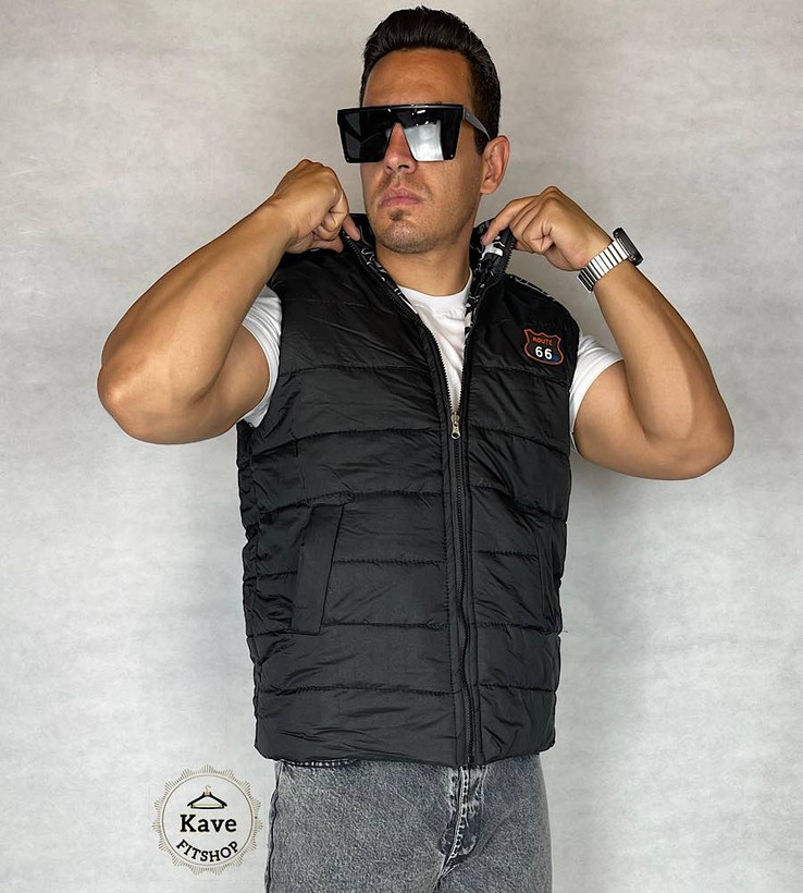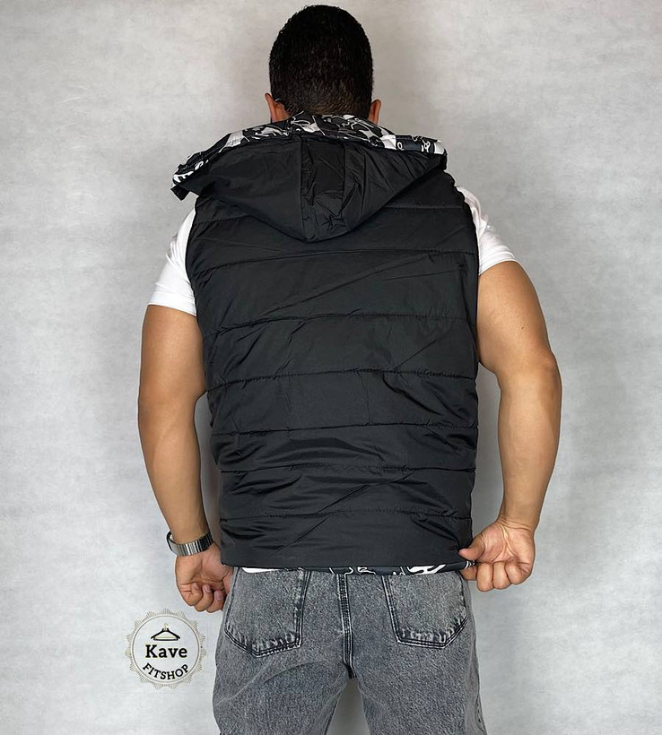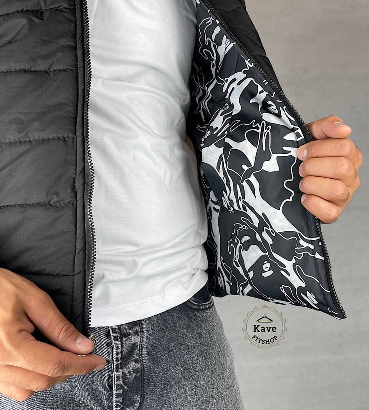 پافر مردانه مدل دو رو مشکی داخل چریکی سفید
