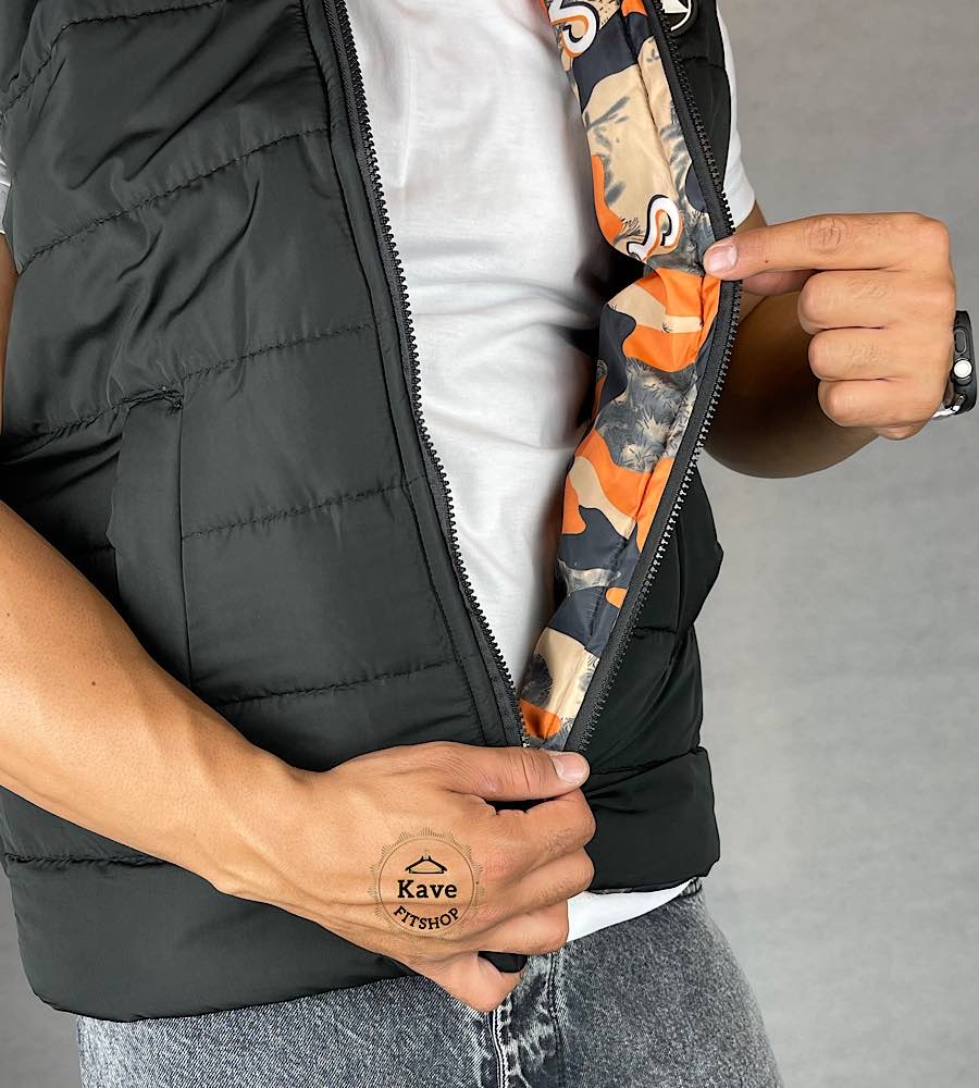 پافر مردانه مدل دو رو مشکی داخل چریکی نارنجی