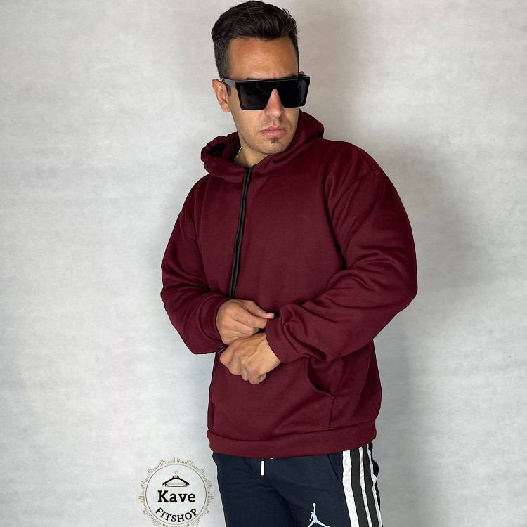 هودی مردانه مدل بیسیک داخل کرکی | زرشکی