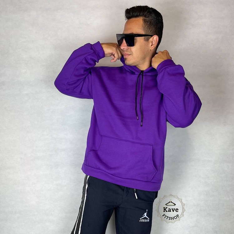 هودی مردانه مدل بیسیک داخل کرکی | بنفش