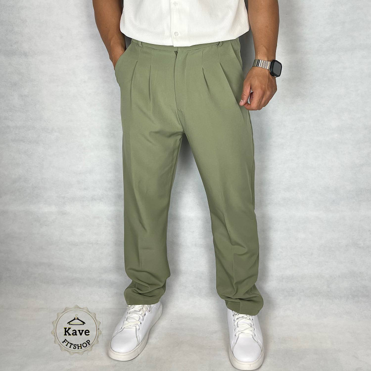 شلوار مردانه مدل کمر ایتالیایی کلاسیک مام فیت | سبز سدری