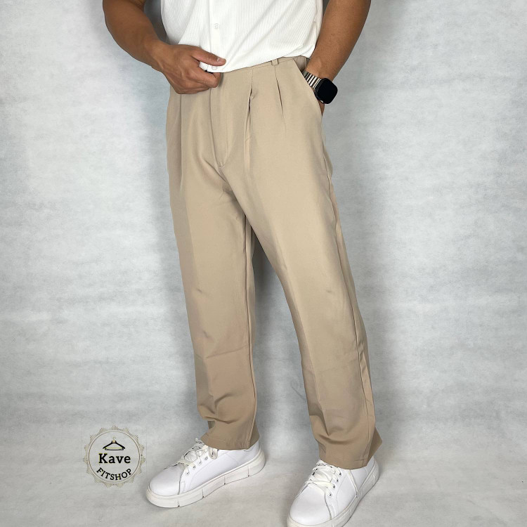 شلوار مردانه مدل کمر ایتالیایی کلاسیک بگ | کرم