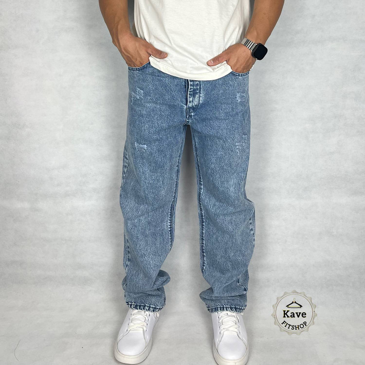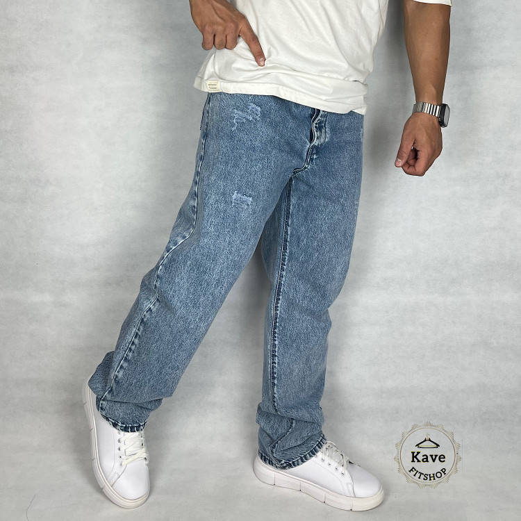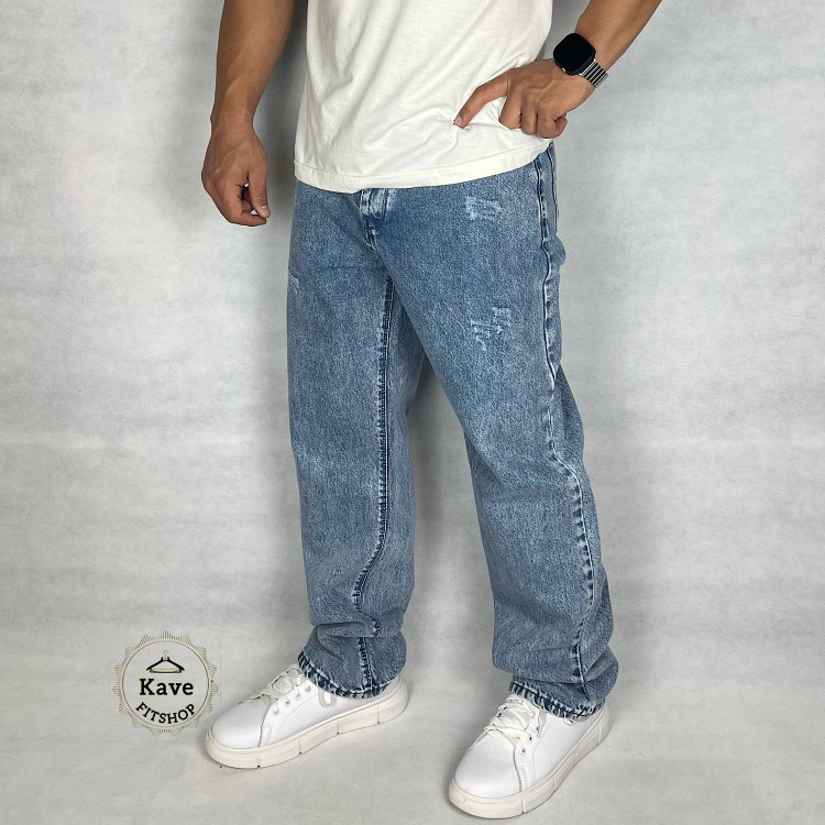 شلوار جین مردانه مدل نیم بگ رنگ آبی روشن