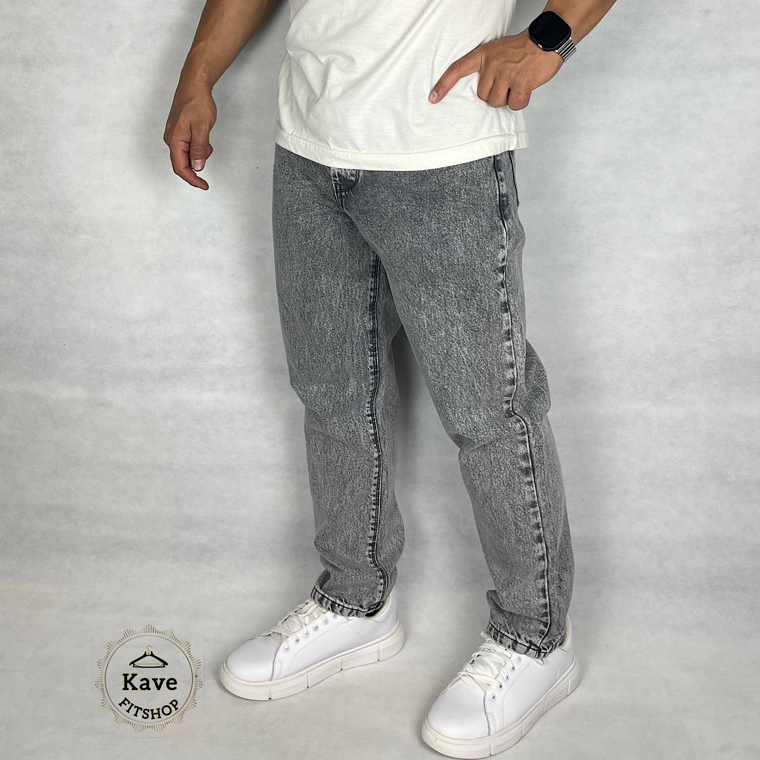 شلوار جین مردانه مدل مام فیت رنگ طوسی