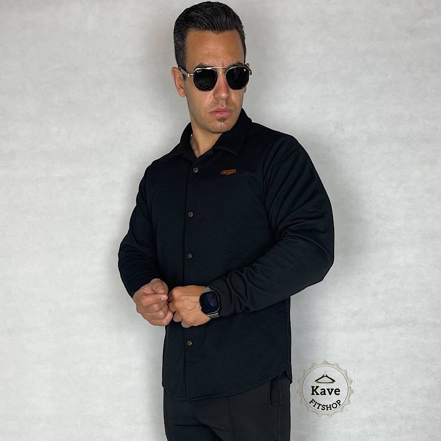 پیراهن مردانه کبریتی داخل کرکی آستین بلند | مشکی