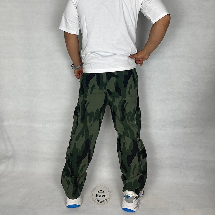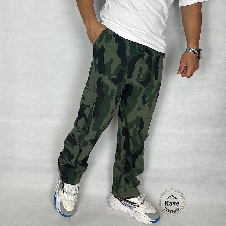شلوار مردانه مدل کارگو طرح چریکی دمپا زیپ سبز