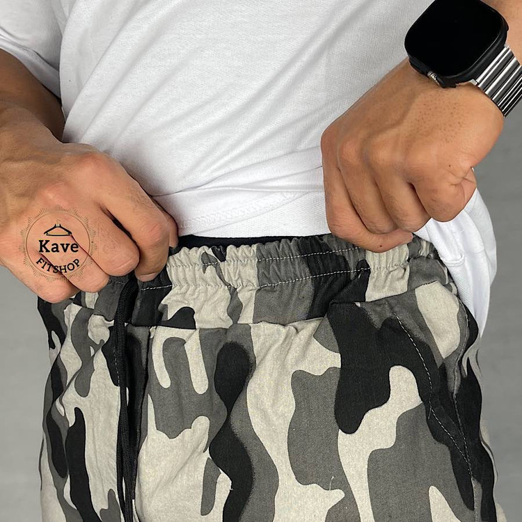 شلوار مردانه مدل کارگو طرح چریکی دمپا زیپ طوسی