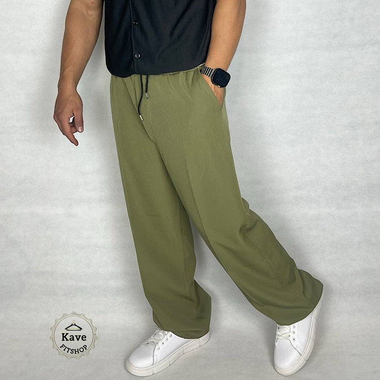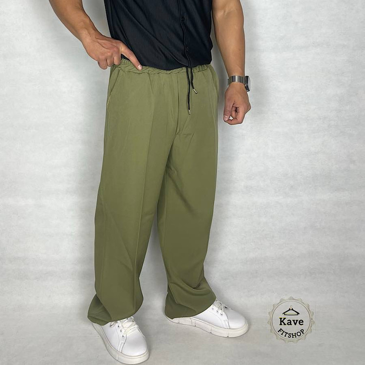شلوار مردانه مدل بگ کلاسیک مازراتی رنگ طوسی سبز زیتونی