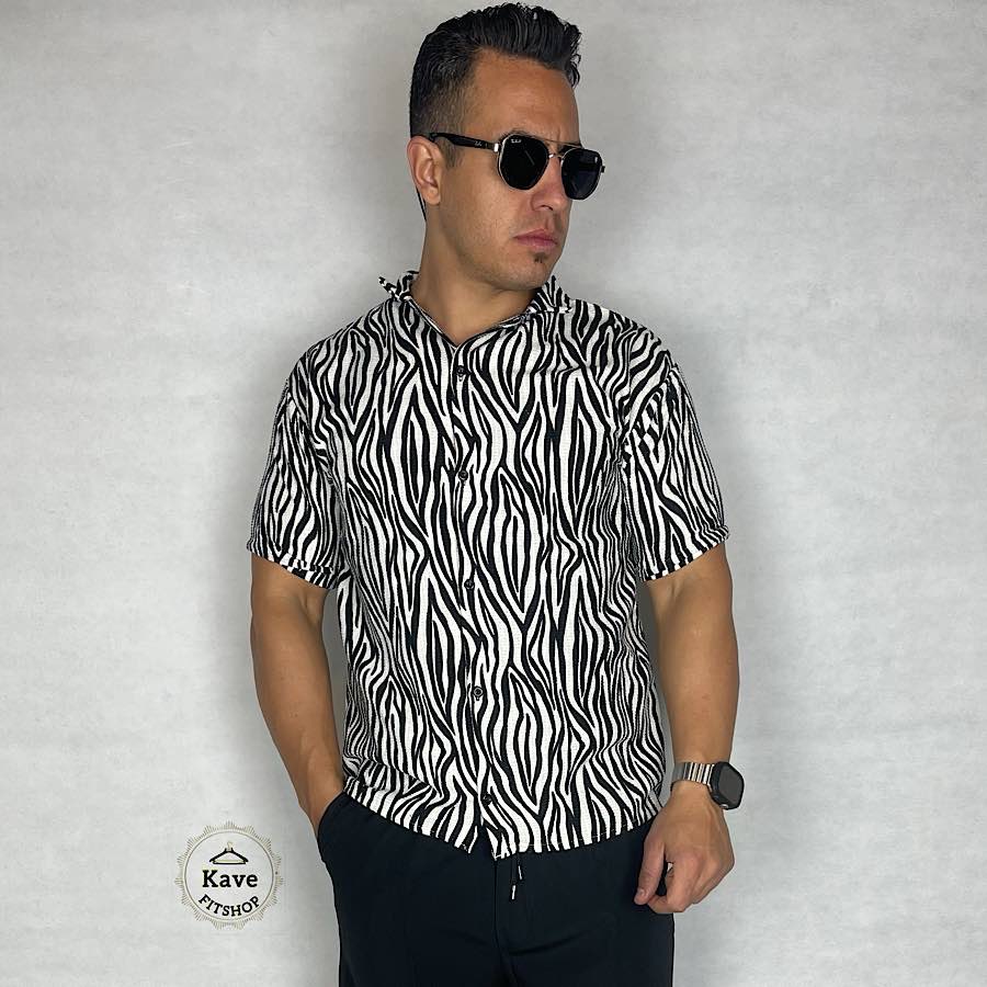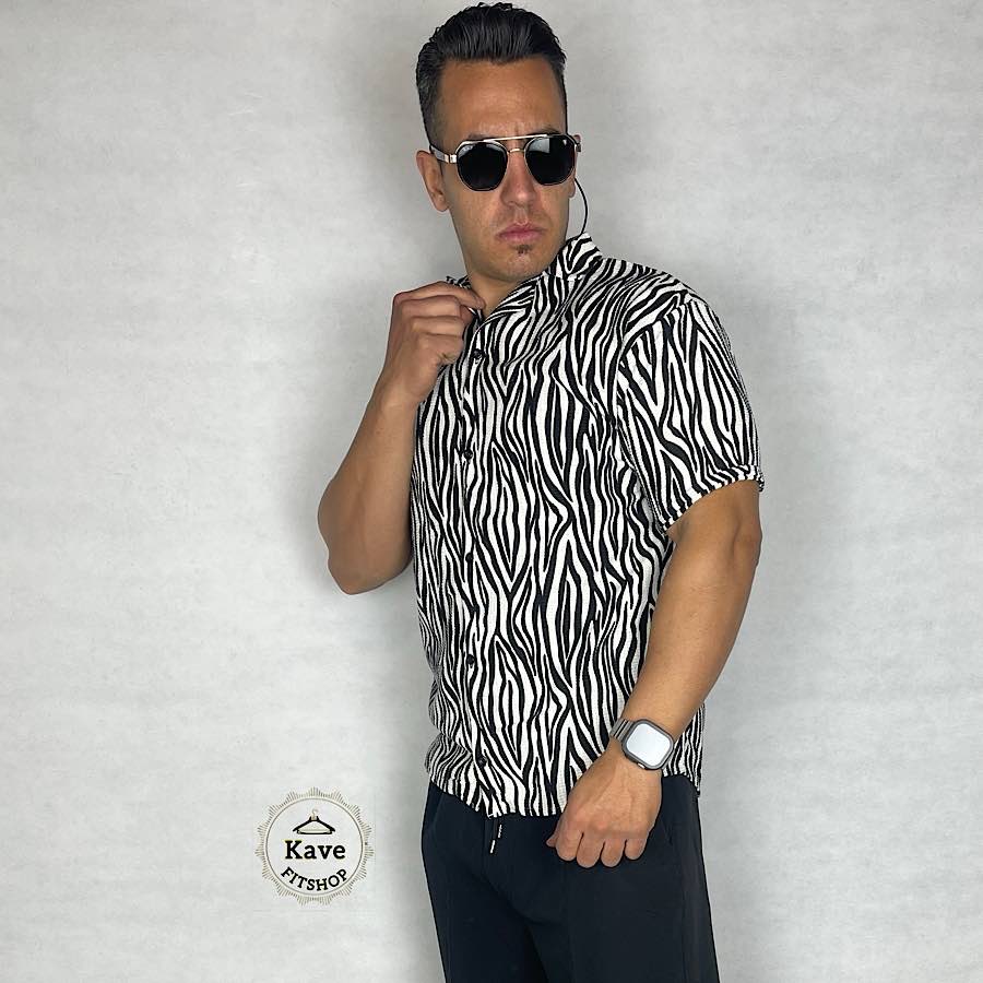 پیراهن مردانه مراکشی رنگ مشکی و سفید