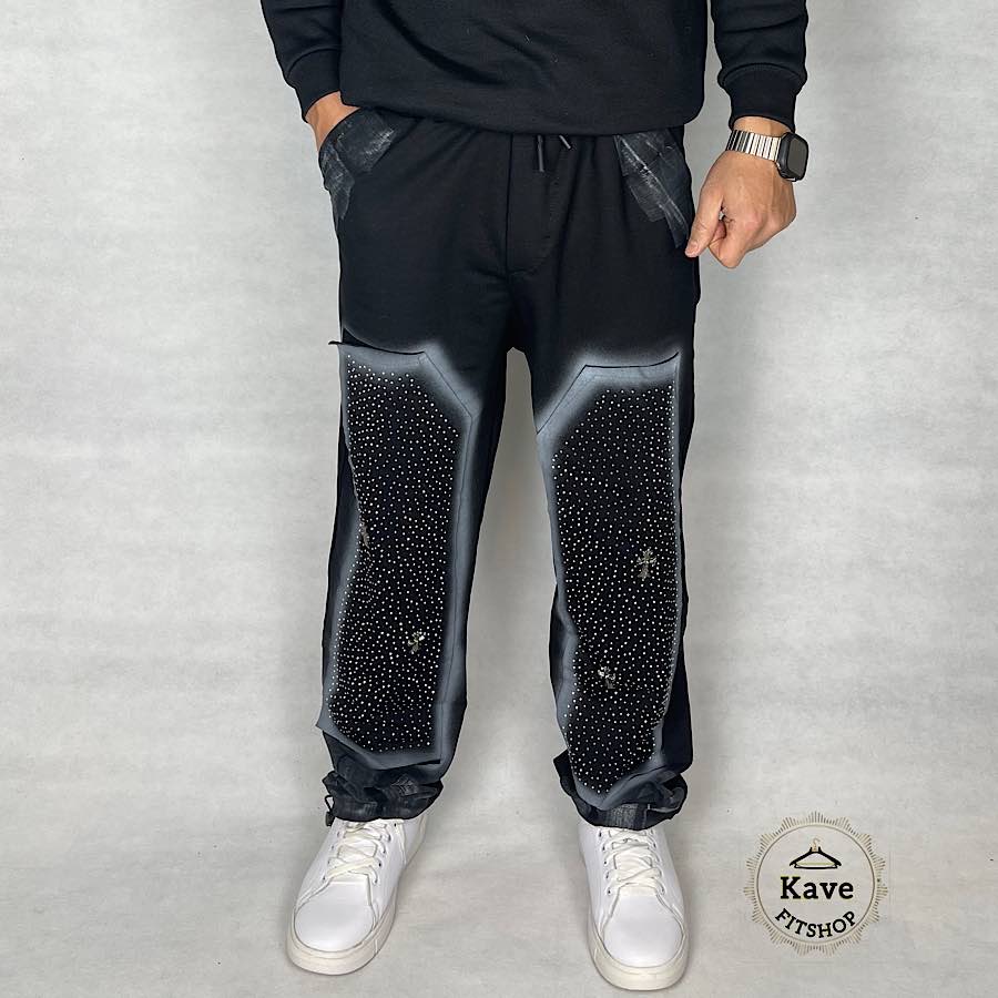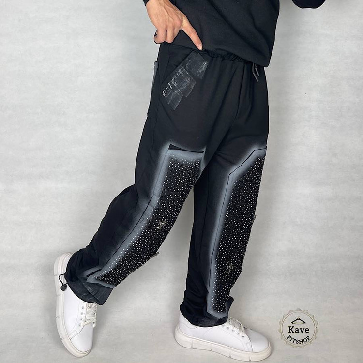 شلوار بگ مردانه کاستوم مدل کروم هارتز نگین و فلز