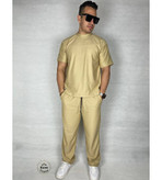 ست تیشرت و شلوار مردانه مدل بیسکویتی کرم