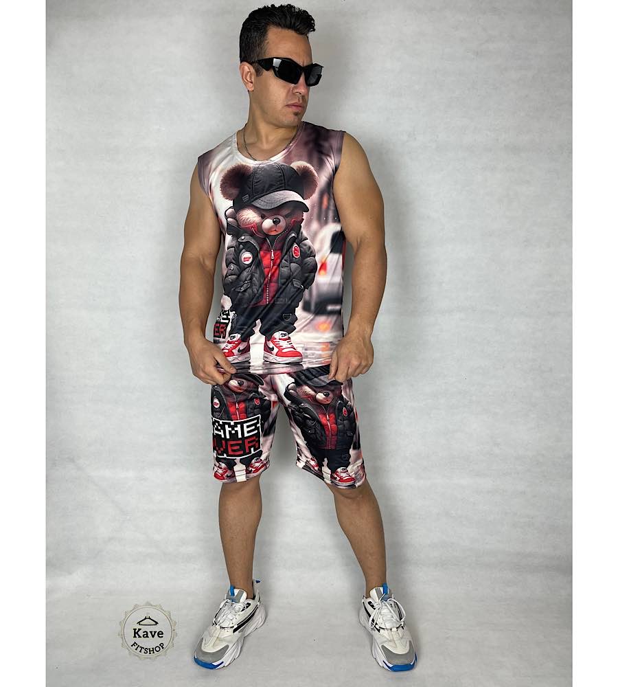 ست مردانه تاپ شلوارک | طرح خرسی